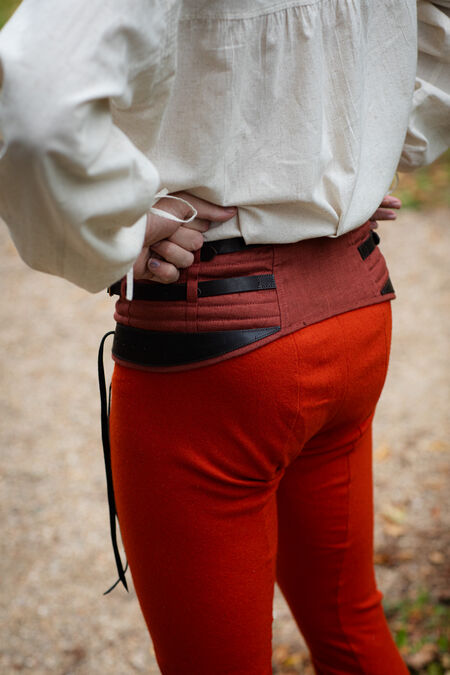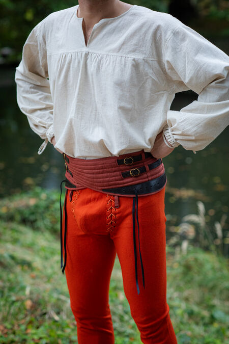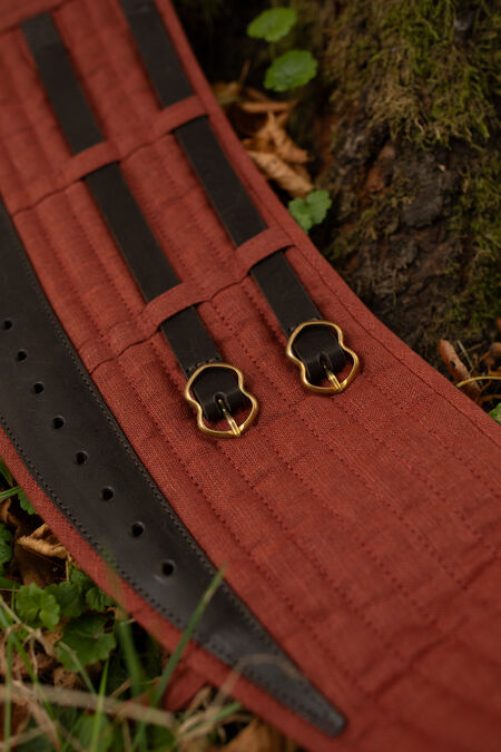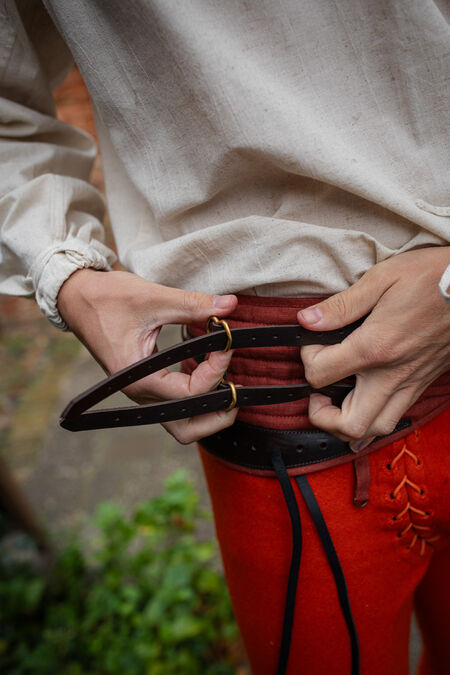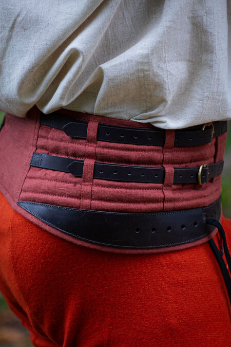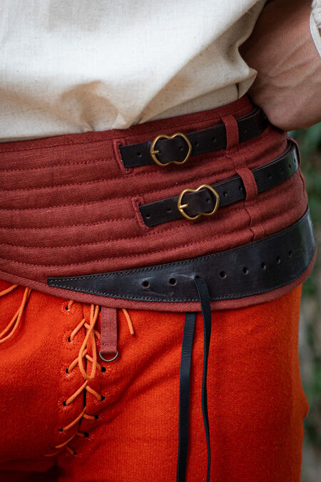 C'est une version légèrement améliorée de notre ceinture d'armes « Mercenaire » : un accessoire indispensable qui empêche vos jambières d'armure de glisser et répartit leur poids. Le système Lendenier a fait ses preuves, notamment auprès des combattants en béhourd et autres combattants en armure, mais il constitue un excellent complément pour tous ceux qui portent des jambières d'armure de plaques.