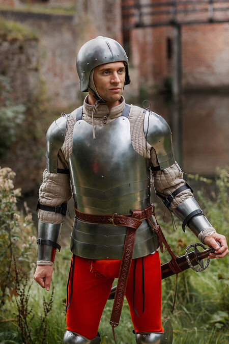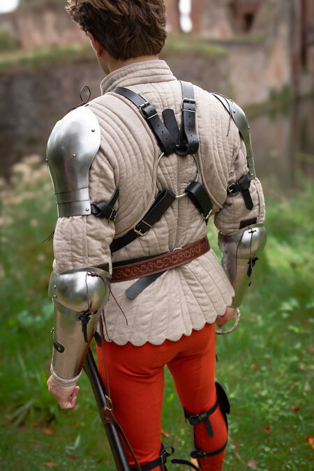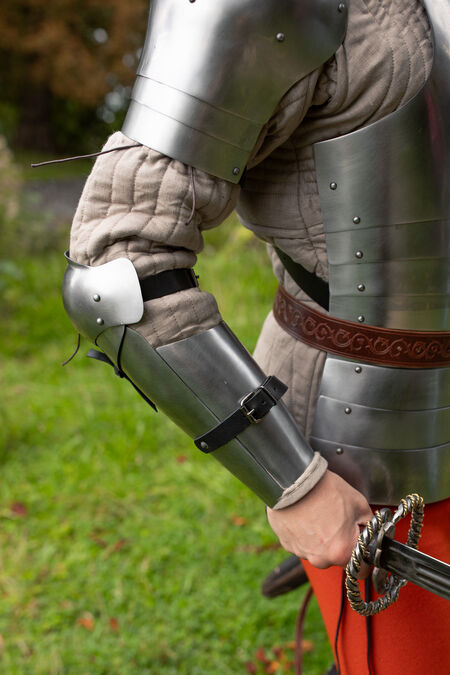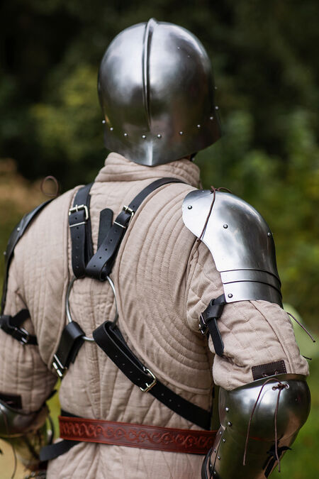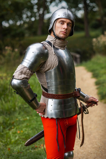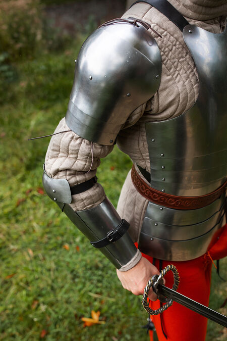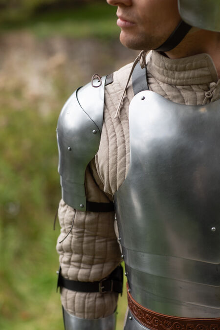 Tout comme notre kit « Mercenaire », il s'agit d'un ensemble de base pouvant être complété pour créer une excellente armure GN, ou, avec les ajouts nécessaires, une armure AMHE harnischfechten, ou encore, en l'ajustant avec des cuissards, un casque et des gantelets, une armure SCA. Ces pièces sont polyvalentes, et vous pouvez acheter des pièces supplémentaires en fonction de vos besoins et de votre pratique du maniement de l'épée.
