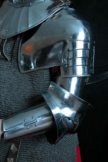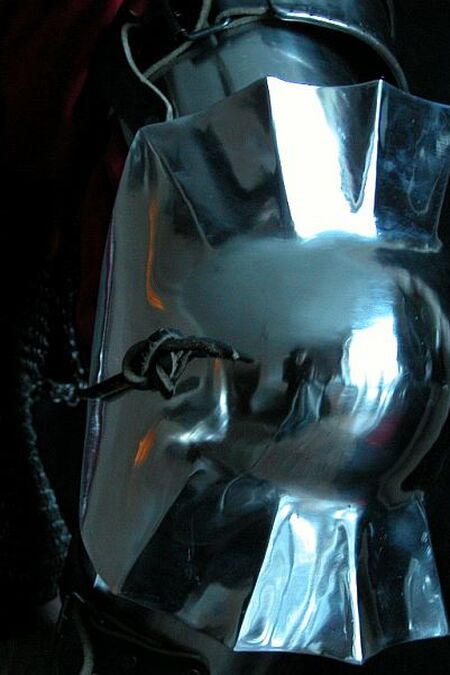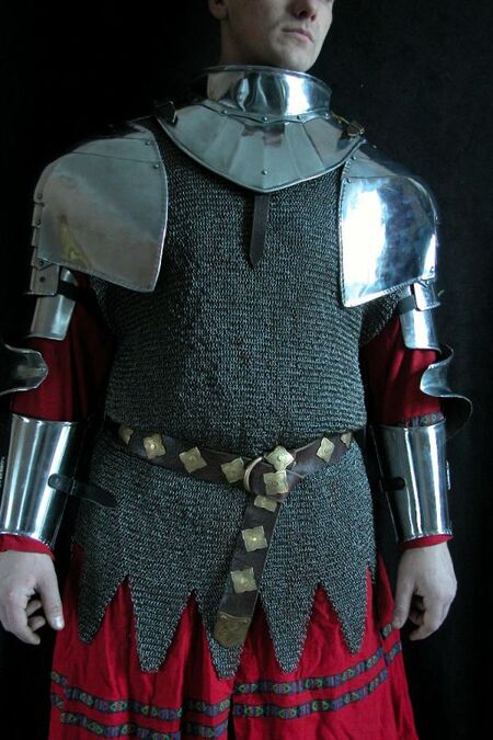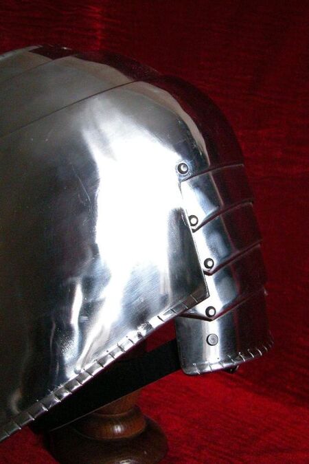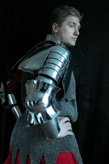 This is top quality medieval armor set. It's made of 1.58 ga stainless steel. Armor is fully handmade. It have "cutted" edges -i.e. small cuts at borders which is one of the best ways of edges shock-absorption. Also it looks great. Gorget is not included, but available in store.