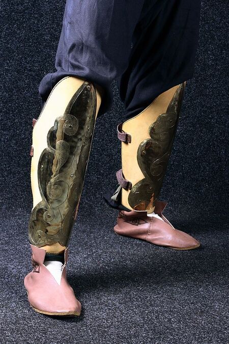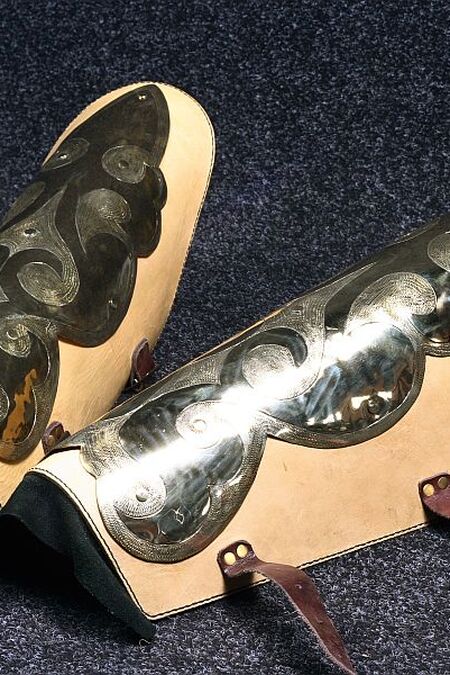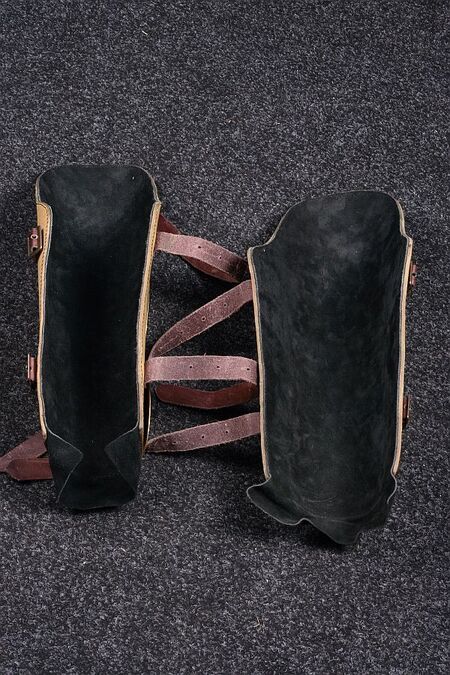 Great design of these greaves is result of many years of experience. They made of thick leather with