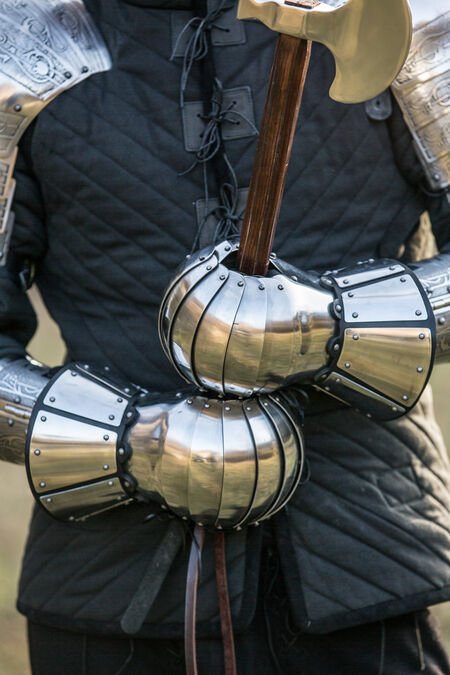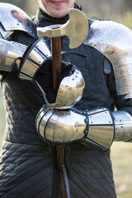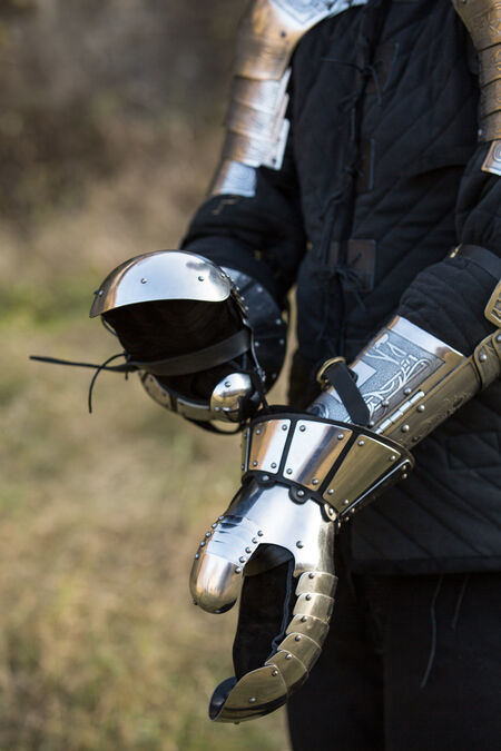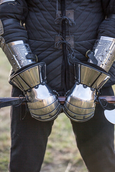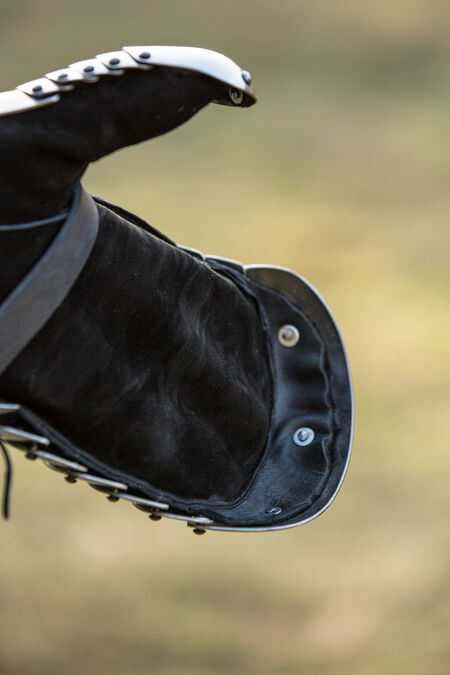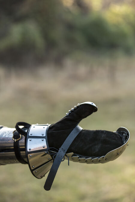 Un choix idéal pour les entraînements et les combats médiévaux. Ce joli design simple est typique pour le début du Moyen Âge – style Norman ou Slave. Ces gantelets ont la forme du pouce modernisée : la forme un peu plus concave des doigts de ce modèle aboutit à une forme plus fermée qui protège mieux le pouce des coups frontaux. Si vous avez besoin des gantelets fiables pour les entraînements ou les combats, cette paire est votre choix idéal. C’est le best-seller de cette catégorie, cas ces gantelets lamellaires vendus par ArmStreet ont reçu de nombreux retours de haute appréciation des combattants de partout dans le monde qui les utilisent depuis bien des années. Ce qui à son tour contribue au perfectionnement permanent de leur fonctionnalité et leur ergonomie.