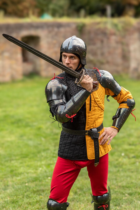 Les deux pièces, grèves et genouillères, peuvent être utilisées (et également achetées) séparément, mais ce kit est le minimum requis pour la plupart des combats à l'épée à points. Si vous souhaitez protéger vos cuisses, consultez nos jambières Rieneck. Vous pouvez obtenir ces jambières avec des plaques de cuissard supplémentaires pour un supplément de 30 %.