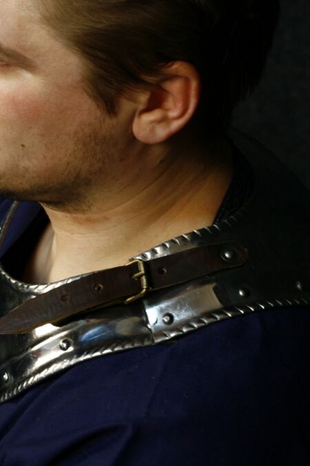 These gorget and spaulders are made of quality 1.58 mm (16 ga) CR steelsteel.
