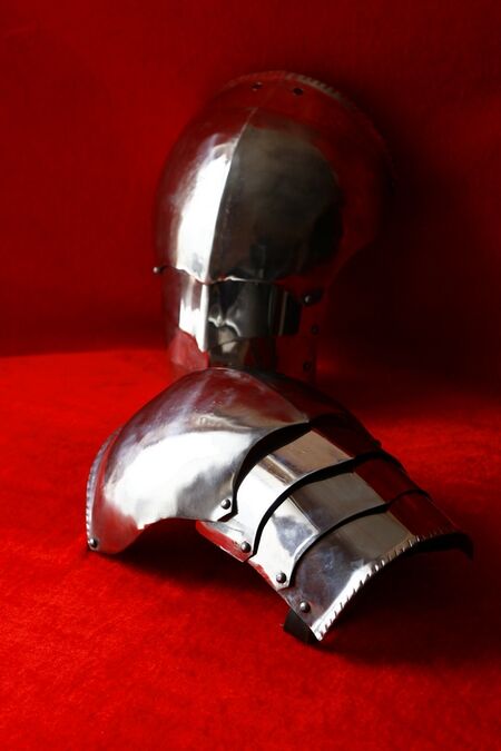 Both gorget and spaulders are available in our store separately in cold-rolled and stainless steel versions