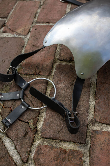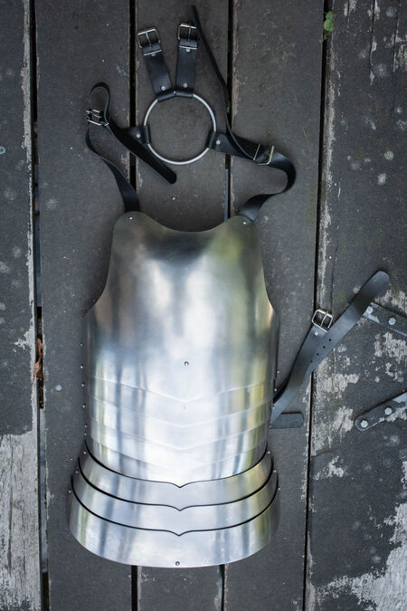 Cette cuirasse est une version simplifiée et pratique de l'un de nos modèles « Loup Noir » les plus populaires. Elle conserve son aspect fonctionnel tout en étant dépourvue de finitions et d'ornements superflus. Il s'agit donc d'une armure de combat à l'épée relativement simple, fonctionnelle et légère (livrée par défaut en acier à ressort trempé), dotée d'un harnais en cuir robuste. Elle conviendra parfaitement à de nombreux hommes d'armes et personnages de petite noblesse, ceux qui gagnent leur vie grâce à leur épée et leur bravoure.