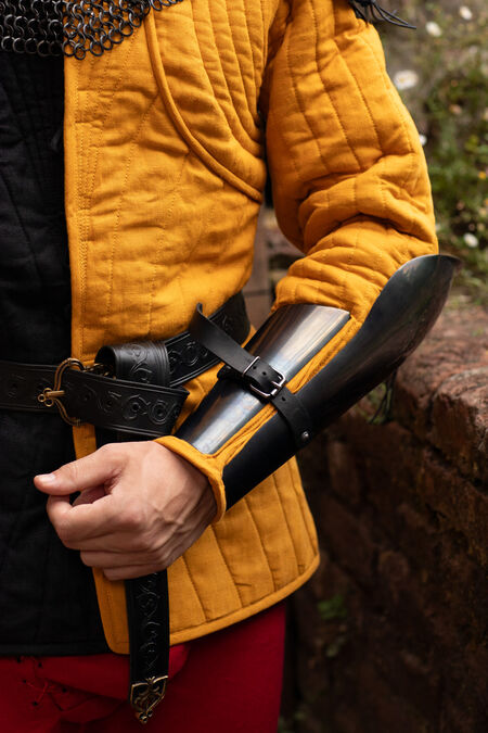 Les bazubands, ou longs brassards avec coudières intégrées, comptent parmi les pièces les plus appréciées des combattants à l’épée, tant aujourd’hui qu’au cours de l’histoire. À l’époque de l’armure blanche de la fin du Moyen Âge, la complexité des formes, la sophistication du design et la précision de l’ingénierie jouaient un rôle essentiel dans la création d’un équipement de protection optimal. Cependant, lorsqu’il s’agit d’un équipement plus pragmatique et fonctionnel, la simplicité et le nombre réduit de pièces mobiles restent les clés de la durabilité et de l’efficacité en combat. Une pièce unique représente le minimum structurel possible — c’est pourquoi les brassards monoblocs avec coudières intégrées constituent une solution éprouvée, alliant protection et fiabilité.