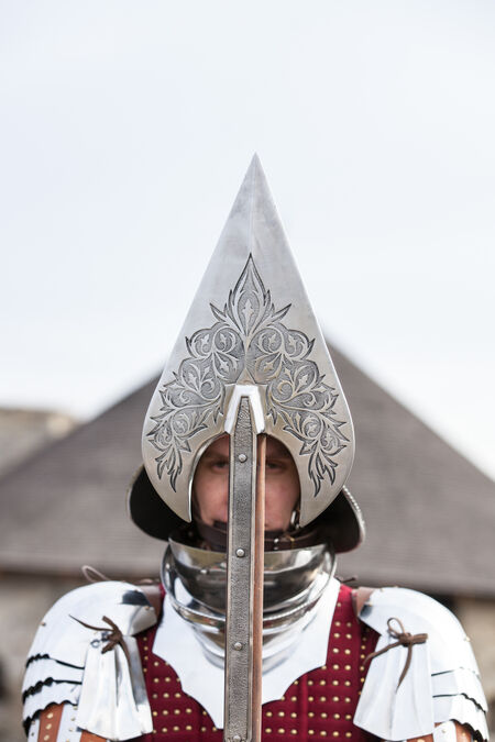 En créant un kit d'armure « Chien de Guerre » absolument authentique, nous étions ravis de le compléter avec une hallebarde fantasy. On pourrait dire qu'elle diffère sensiblement des modèles connus. Et c'est le cas. Il n'existe aucun équivalent historique ; laissez libre cours à votre imagination et expérimentons avec cette tête de hallebarde.