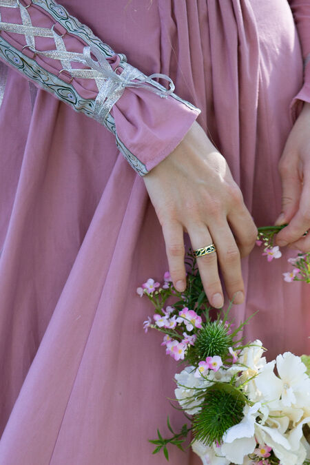 Les motifs coupés sur la bague ont été créés par nos designers pour compléter toute la collection et pour s’allier avec l’esprit elfique, médiéval et même moderne ! Le motif à l’entrelacs elfique est facile à combiner avec l’Art Nouveau qui est très visible dans le résultat final.