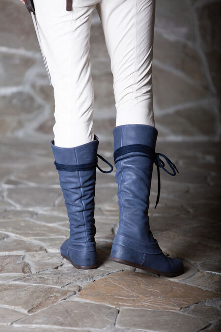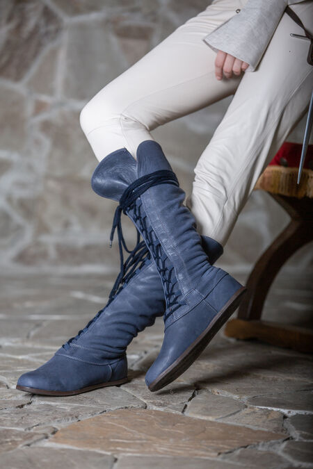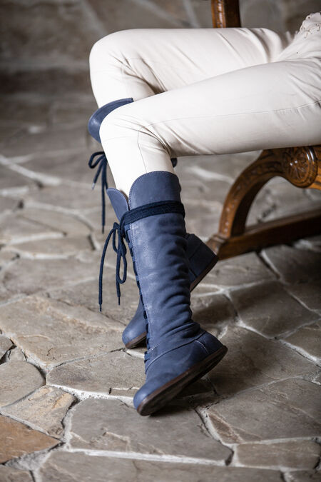 Rabais: Bottes médiévales pour femme «Forêt» | Vente des dernières bottes en cuir bleu mat et en cuir olive mat