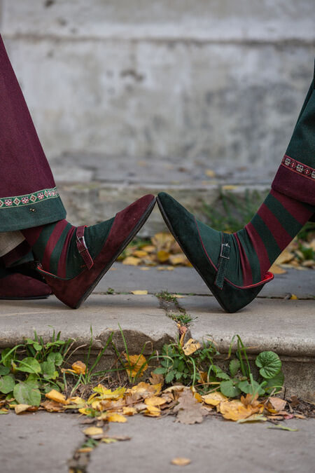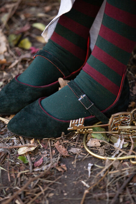 Parfait : dans l'attente de la prochaine journée médiévale les chaussettes rouges et les chaussures ( très belle qualité et taille impeccable)serviront pour costume de sorcière Halloween