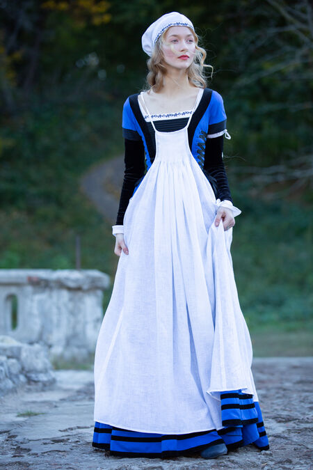 Costume Renaissance pour femme: robe, chemise, tablier, coiffe