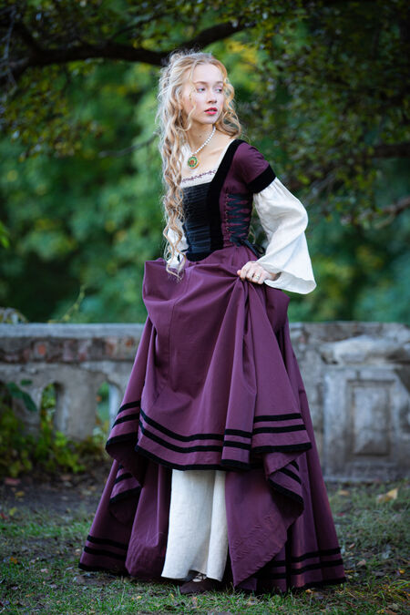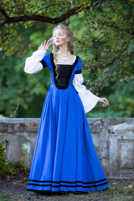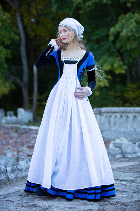 Grâce au nombre important de peintures conservées des XVe et XVIe siècles, représentant divers lieux et classes sociales, nous pouvons découvrir en détail les caractéristiques du costume féminin de la Renaissance. Ce vêtement se distinguait par des ornements tels que des broderies et des associations de tissus contrastées. Il comportait souvent un corsage ajusté à manches amovibles et une jupe ample. Il était généralement porté par-dessus une robe en tissu fin et complété par d'autres couches de vêtements. La coiffe était un élément essentiel de la tenue et, à l'instar de la robe, reflétait l'époque et la région d'Europe auxquelles appartenait celle qui la portait. Cette période fut marquée par une mode éphémère et changeante, et la crainte d'être démodée était très présente.