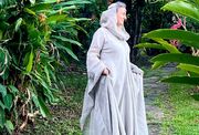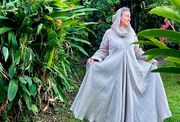 Je suis absolument conquise par cette magnifique robe !!! L'ampleur de tissu est incroyable et sa finesse la rend très agréable à porter malgré le climat tropical des Caraïbes. La longueur est beaucoup trop importante donc nous allons y remédier après un ou deux lavages.. Cela faisait plusieurs années que je voulais faire cet achat en attendant toujours de "maigrir" pour en être digne, mais à 52 ans j'ai décidé de ne pas attendre d'avoir une canne pour me faire plaisir et je ne le regrette pas du tout. La robe de par ses lignes magnifiques cache ce que l'on veut cacher et la longueur des manches sublimes allonge la silhouette. J'ai essayé cette magnifique tenue avec ma ceinture viking "Gudrun l'Héroique", et avec les bijoux et ceinture de la collection "Archère". Tous les accessoires sa marient très bien avec mais elle est si belle qu'elle se suffit aussi à elle-même. Je la porte avec la chemise en lin fin couleur naturelle "La Grâce" car elle est assez transparente. Pour info je fais 75kgs pour 1.62m donc plutôt rondelette :-). Un immense merci à Natacha qui a été d'une aide inestimable et a supporté mes angoisses vis a vis de la livraison vers ma petit île du bout du monde. Je n'oublie pas les merveilleux artisans d'Armstreet qui persévèrent malgré le fardeau qu'ils subissent. Mon coeur est avec eux chaque fois que j'effleure cette sublime tenue.