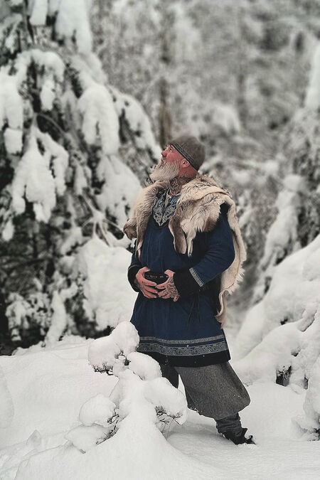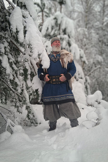 Comme beaucoup de peuples anciens, les Vikings considéraient également les vêtements comme ayant une signification particulière. Ils considéraient la gorge de l’humain comme une partie cruciale du corps, car ils croyaient que c’était là que l’âme partait lorsqu’une personne décédait. C’est pourquoi les Vikings accordaient une attention particulière à la décoration de l’encolure de leurs vêtements. Suivant cette tradition, nous avons orné l’encolure de cette tunique de broderies faites à la main. Ce type de finition reproduit les techniques utilisées autrefois, notamment le style de broderie normande. Même si cela nécessite beaucoup d’efforts, le résultat est impressionnant et authentique : les créatures mythiques protègent votre cou à l’avant comme à l’arrière. Les dragons brodés sur l’encolure complètent le motif de la bordure. L’ensemble du décolleté et du bord des manchettes sont finis à la main avec un fil épais qui s’enroule autour de la corde en petits points, ne laissant aucune chance aux mauvais esprits de s’approcher de vous.